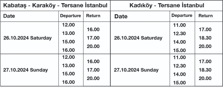 During Contemporary Istanbul, boat services will be provided for round-trip transportation. Guests possessing a fair ticket or invitation are entitled to complimentary boat transportation.